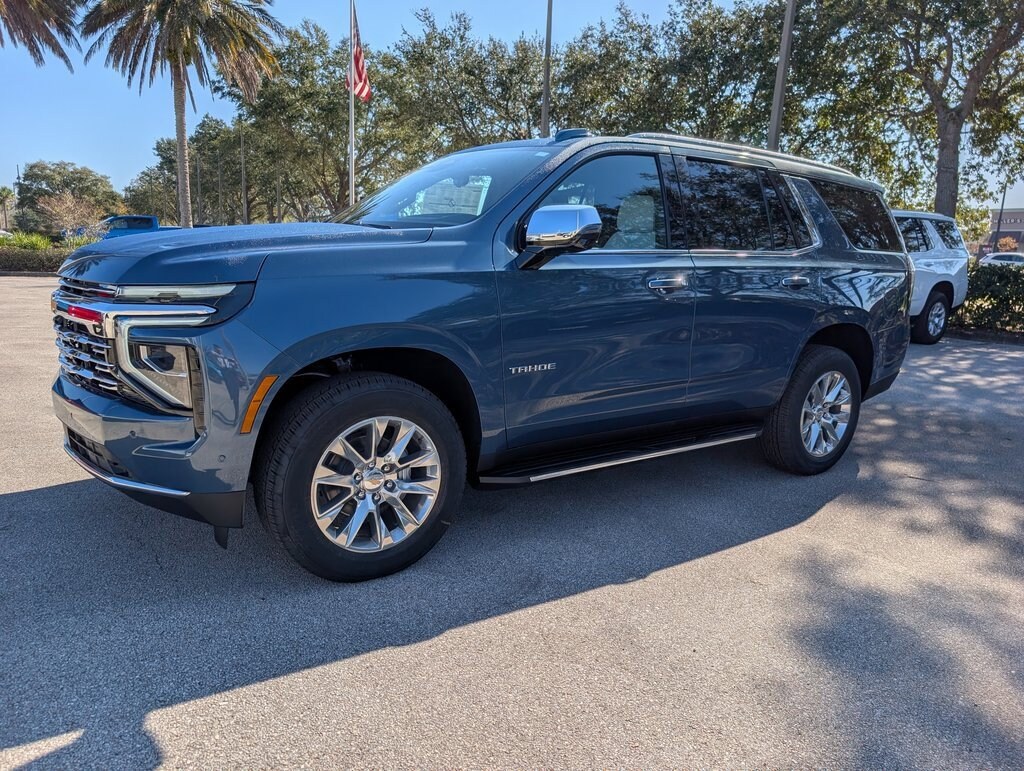 Lakeshore Blue Metallic 2026 Chevrolet Tahoe Premier 4WD 10-Speed Automatic with Overdrive EcoTec3 5.3L V8 4WD, Jet Black Sky Gray Leather.
