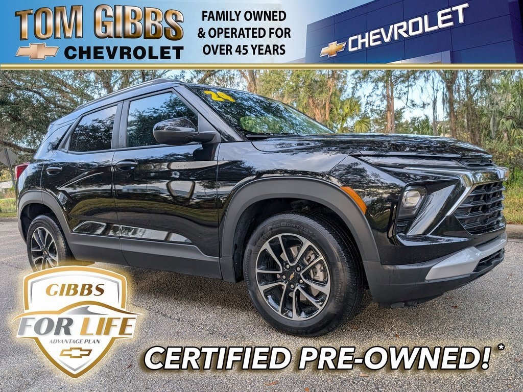 Mosaic Black Metallic 2024 Chevrolet TrailBlazer LT FWD CVT 1.3L Ecotec Turbo DOHC SIDI w/VVT CarFax One Owner, CarFax Clean, Remainder of Factory Warranty, 1 Year Complimentary Maintenance and Paint Protect, Driver Confidence Package, Lane Change Alert w/Side Blind Zone Alert, Preferred Equipment Group 1LT, Rear Cross Traffic Alert, Rear Park Assist.All prices plus $1195 dealer fee, tax, tag, and registration. PRICES INCLUDE TOM GIBBS CHEVY FINANCE BONUS. SEE DEALER. Ask about our free home delivery options. Buy 100% online without stepping foot into the dealership. Price Includes Tom Gibbs Finance Bonus. See Dealer. Enjoy the complimentary perks of the Gibbs For Life Advantage Plan. 1 year of key protection, 1 year of paint protection, 1 year of complimentary basic maintenance, preferred 50% off LOF pricing, lifetime loaner cars, and much more! Recent Arrival! Odometer is 7625 miles below market average! 29/33 City/Highway MPG